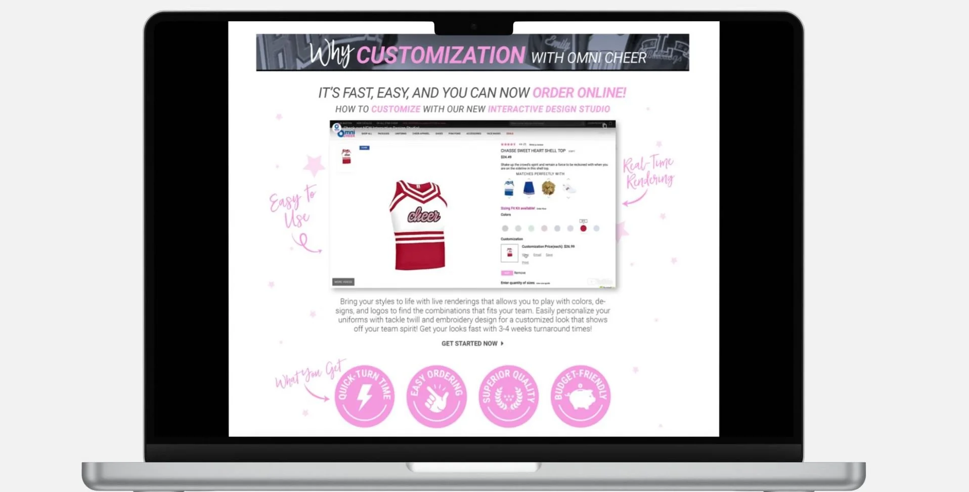 Omni Cheer, part of Elite Sportswear, required a comprehensive launch strategy for their new line of budget-conscious team apparel for middle and high schools. This included refreshed messaging, marketing materials, and designs for all platforms.